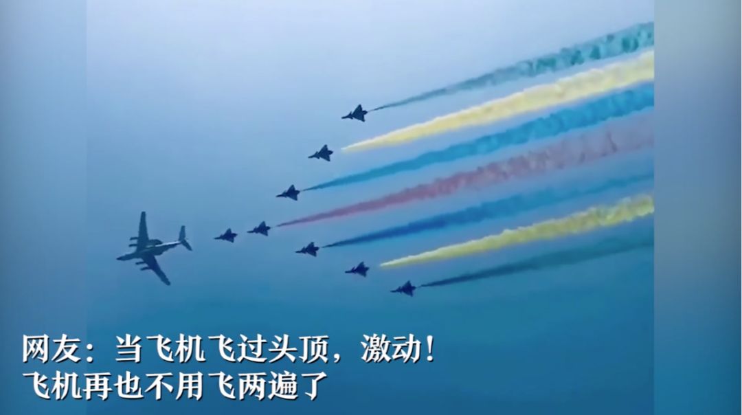 9月21日至9月23日,天安门地区及长安街沿线将举行国庆70周年庆祝活动第三次全流程演练。 22日上午,北京的天空被飞机“刷屏”!有飞机编队成“70”字样,还有飞机编队喷射出了彩色烟雾! 国庆大阅兵,越来越期待!